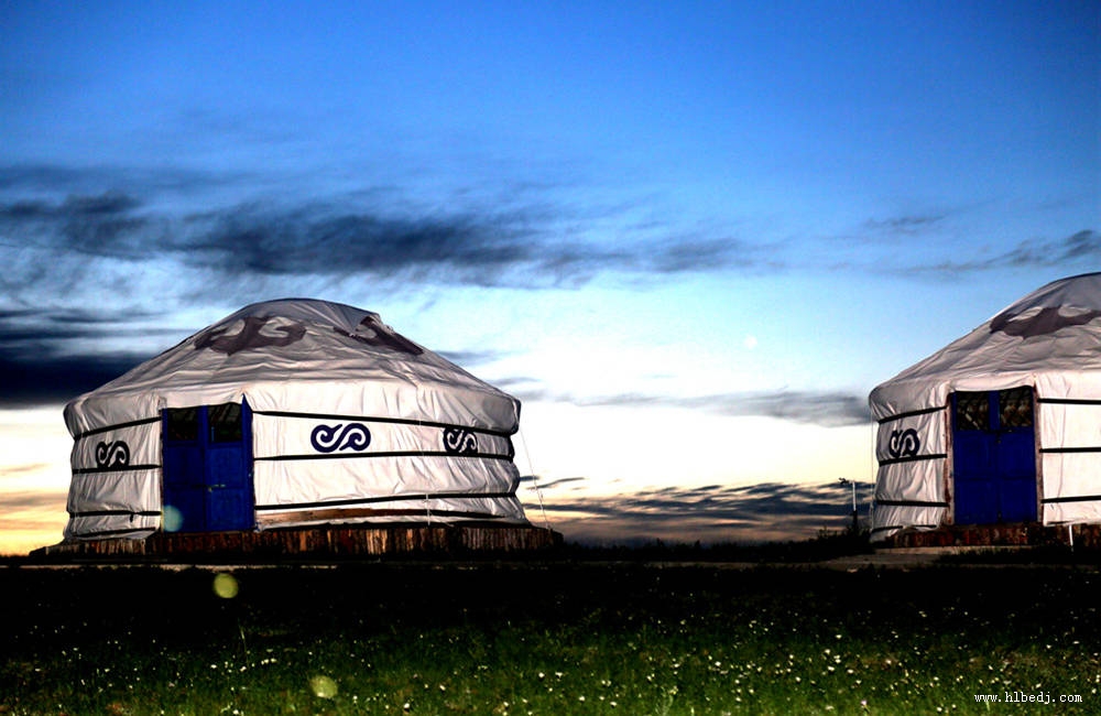 草原傍晚的蒙古包